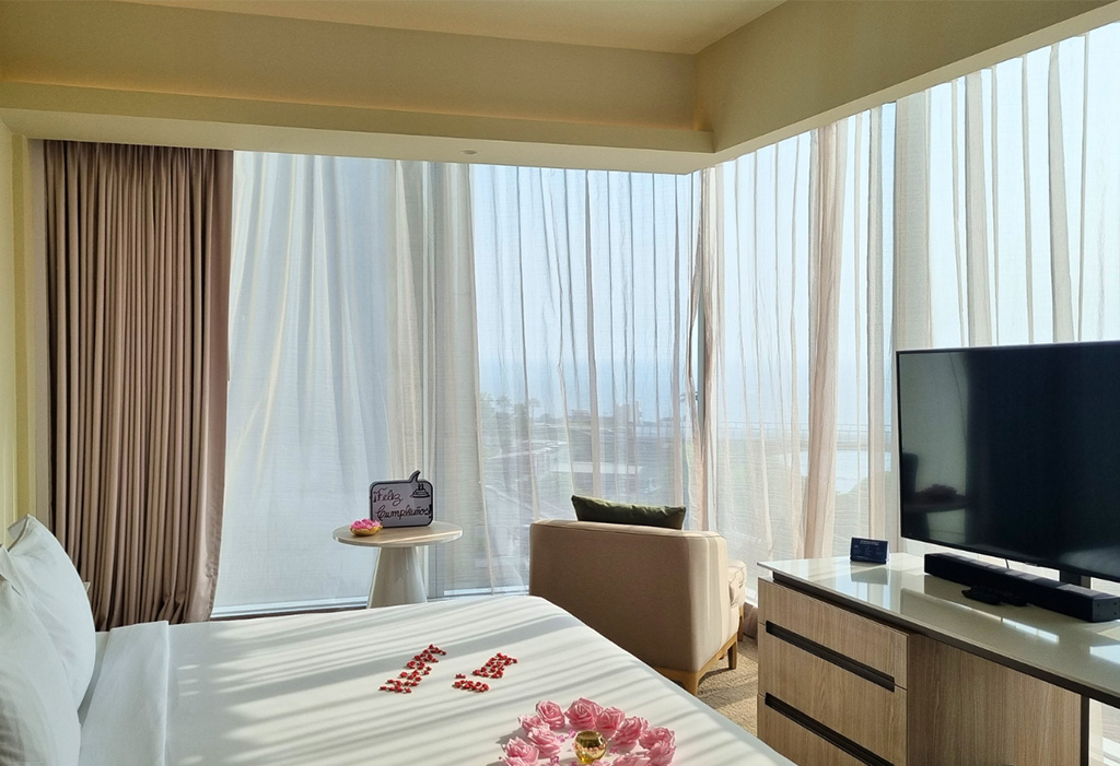 En cuanto al diseño, las cortinas deben integrarse al concepto arquitectónico del hotel. Actualmente, los estilos más solicitados combinan líneas limpias, colores neutros y acabados sofisticados. Las opciones más usadas incluyen rollers, paneles deslizantes y sistemas motorizados, ideales para habitaciones de alto estándar o suites.