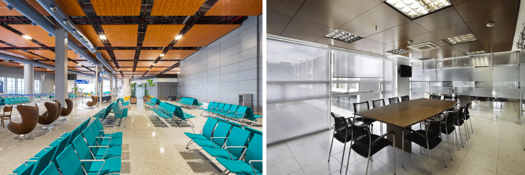 – Alta absorción acústica, ideal para oficinas, auditorios y zonas de tráfico constante.