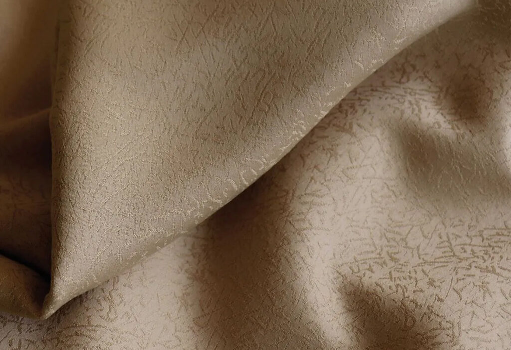 Los tejidos satinados o con reflejos sutiles como la seda o el Jacquard transmiten sofisticación y dinamismo. Al captar la luz, cambian su apariencia a lo largo del día y aportan un toque de lujo discreto, ideal para espacios más formales o contemporáneos.