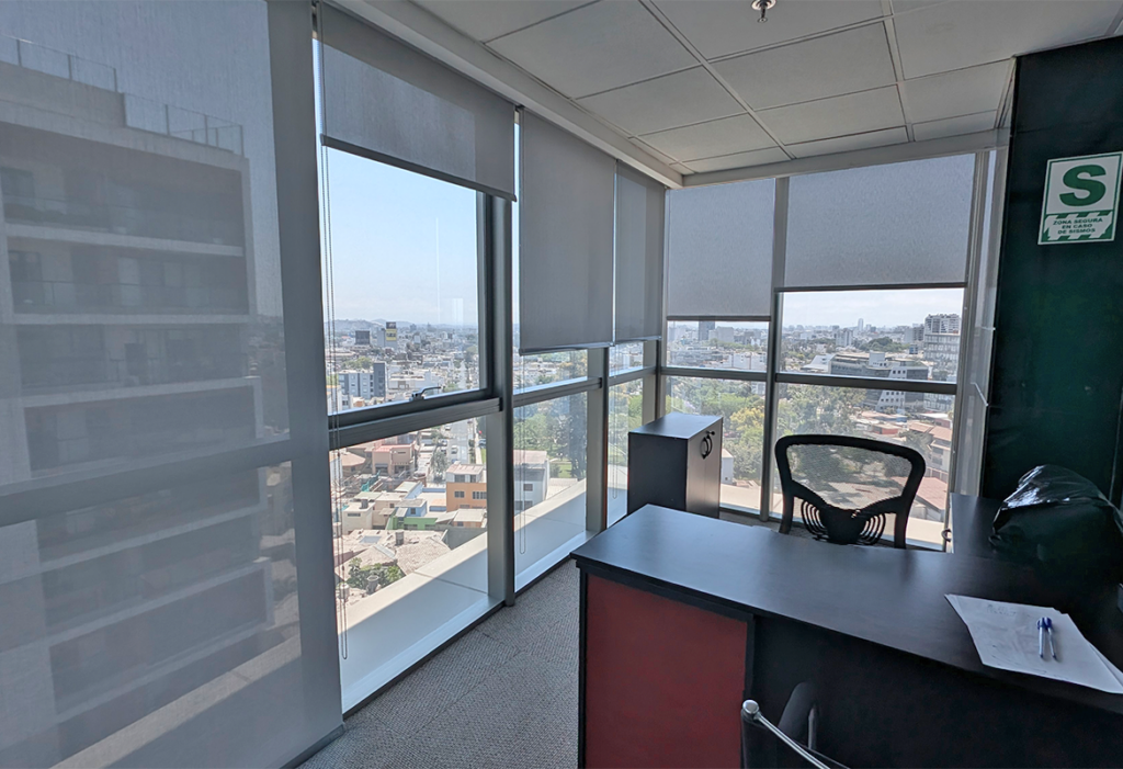 – Roller screen (3% o 5%): perfecto para oficinas con alto ingreso de luz solar. Reduce reflejos sin perder visibilidad al exterior.