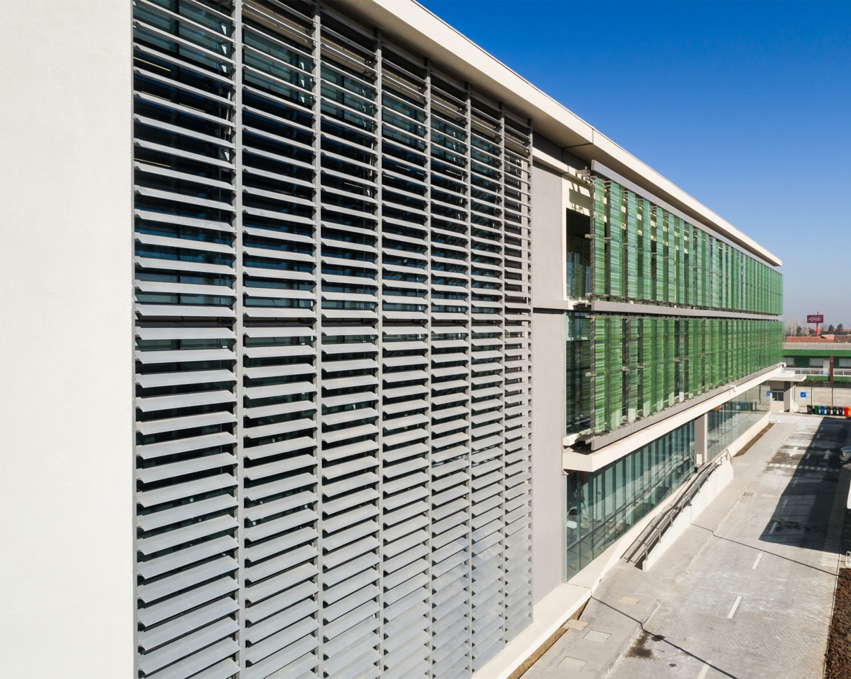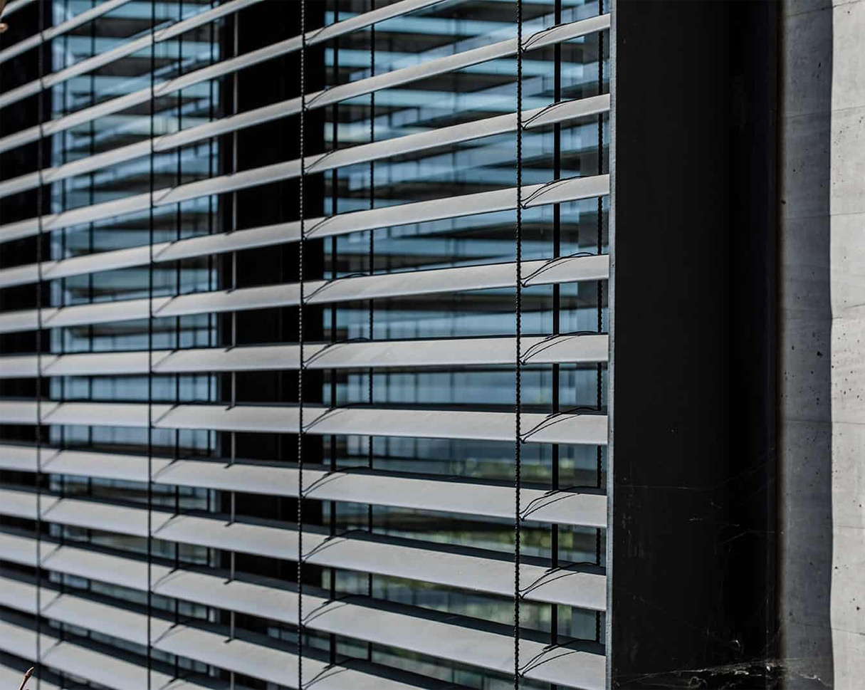 Cortasoles y celosías diseñados para filtrar la luz natural y reducir el deslumbramiento.