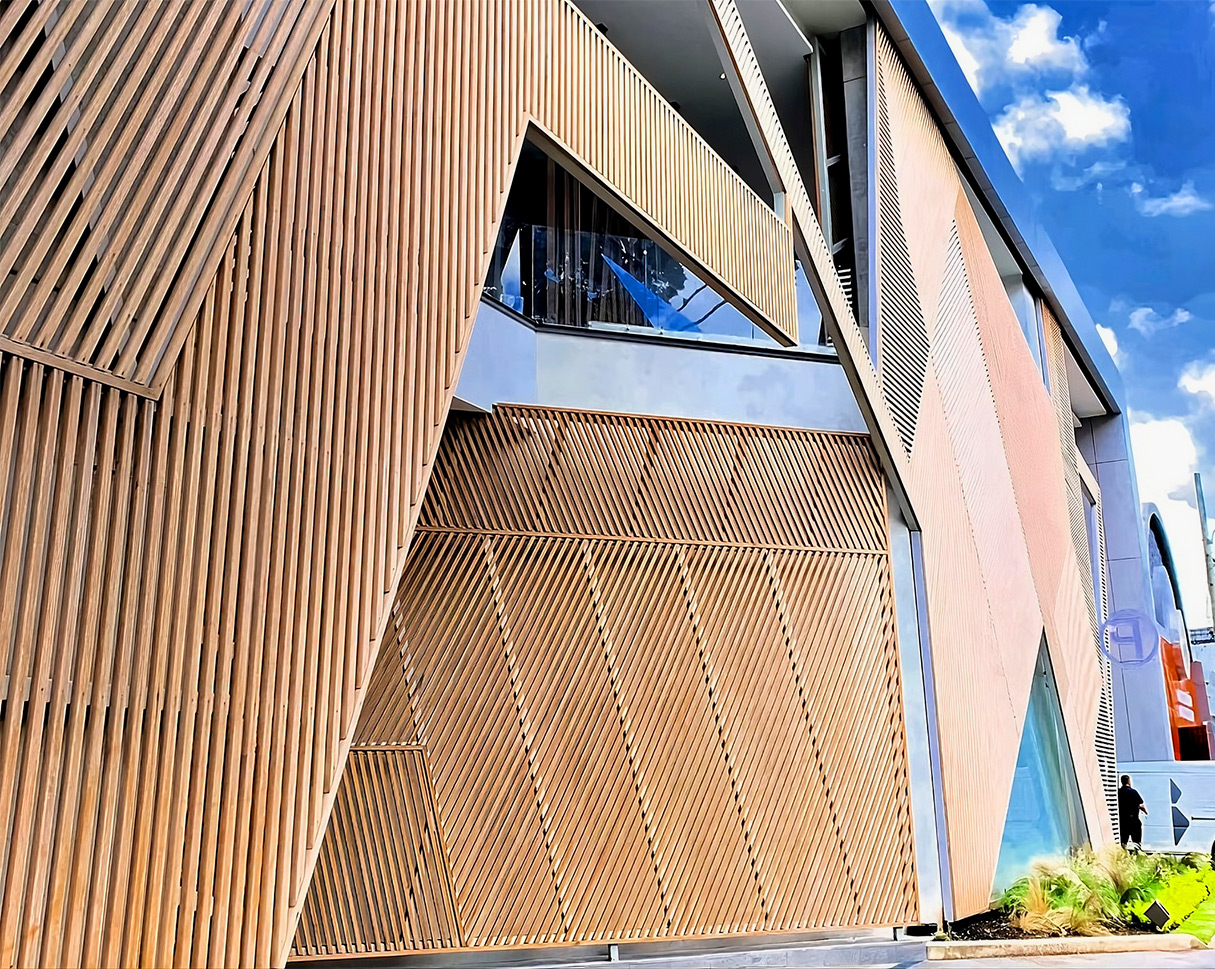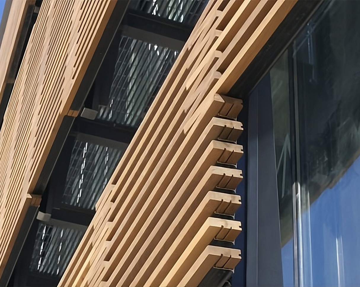 Los Cortasoles de Madera Hunter Douglas están fabricados con lamas de madera sólida tratada con impregnación, garantizando resistencia y durabilidad en condiciones exteriores. Estos sistemas no solo ofrecen un control eficiente de la luz natural, sino que también aportan calidez y sofisticación al diseño arquitectónico, adaptándose a diversas configuraciones de fachadas y espacios.