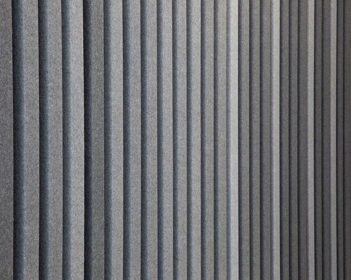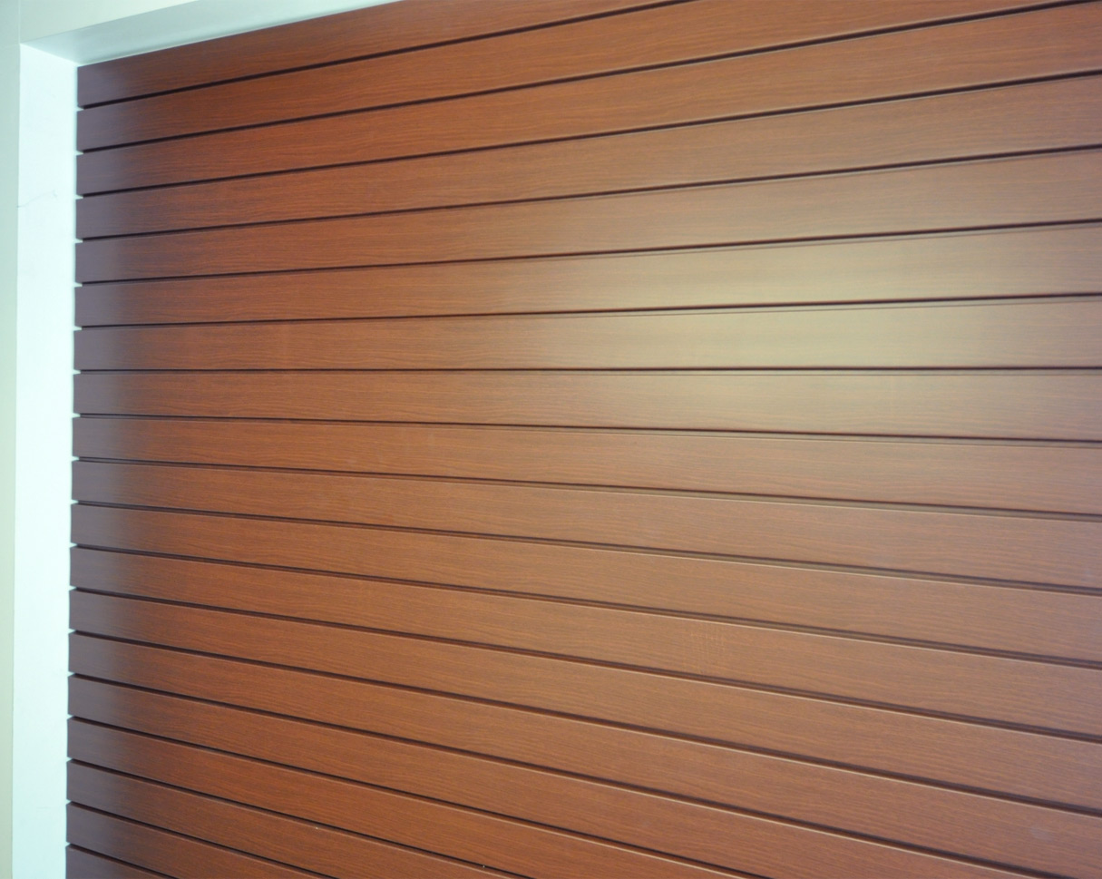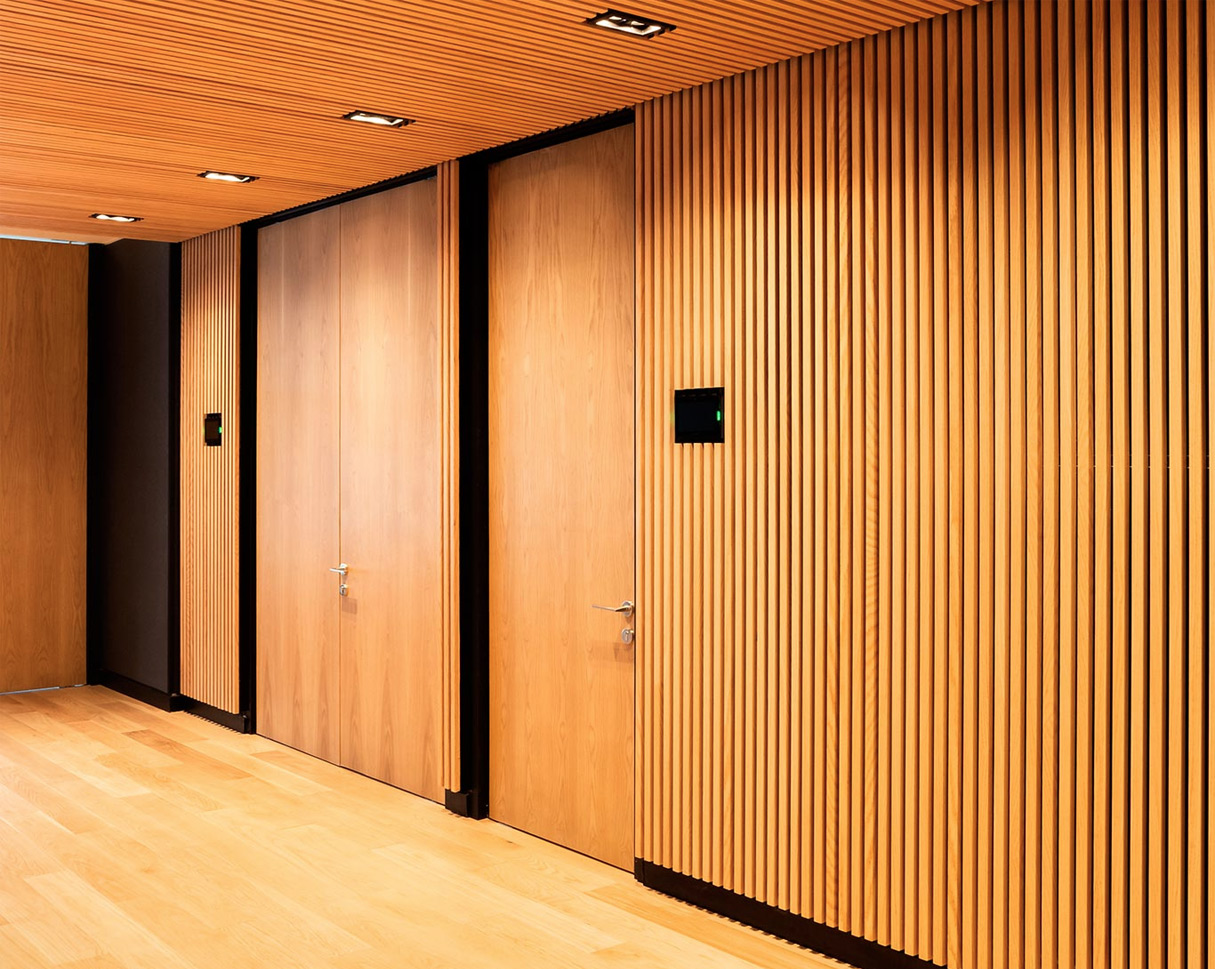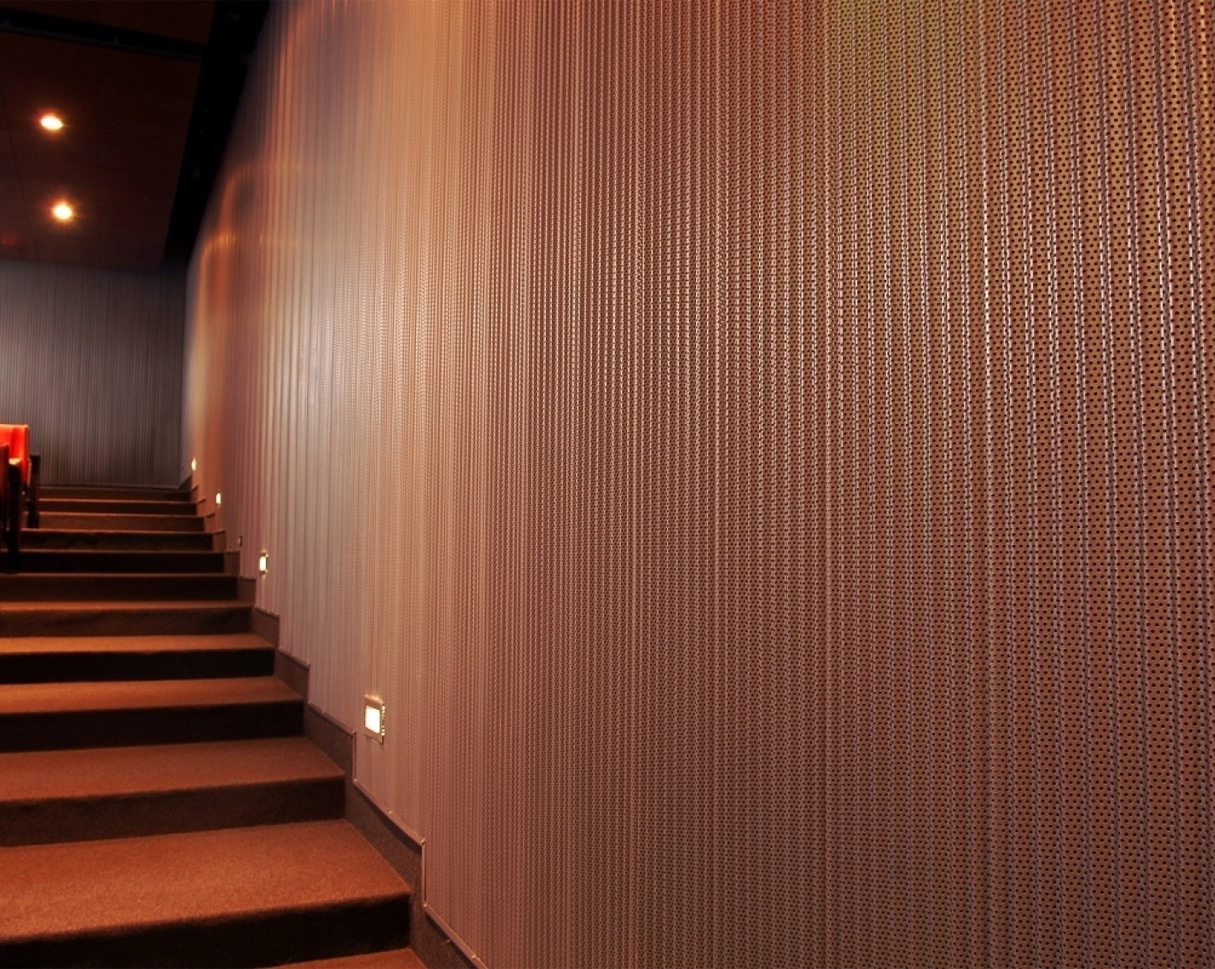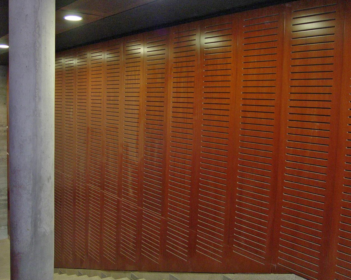 Revestimiento muro interior metálicos, acabados tipo madera o fieltro para aplicación interior, con terminación lisa, perforada o ranurada.